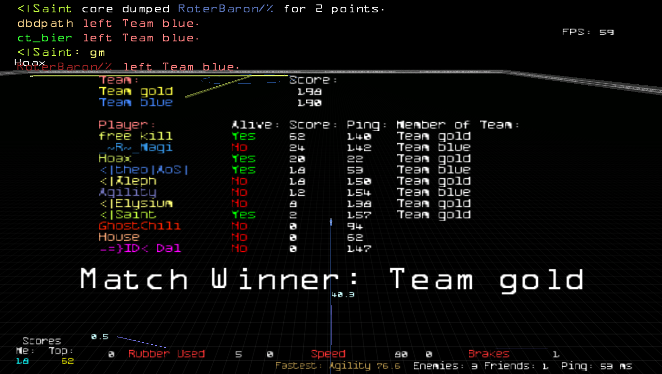 + | 12th Nov 2013: FreeKill achieves "Even lower score" Bronze medal.[http://forums3.armagetronad.net/download/file.php?id=13286&mode=view] | ||
